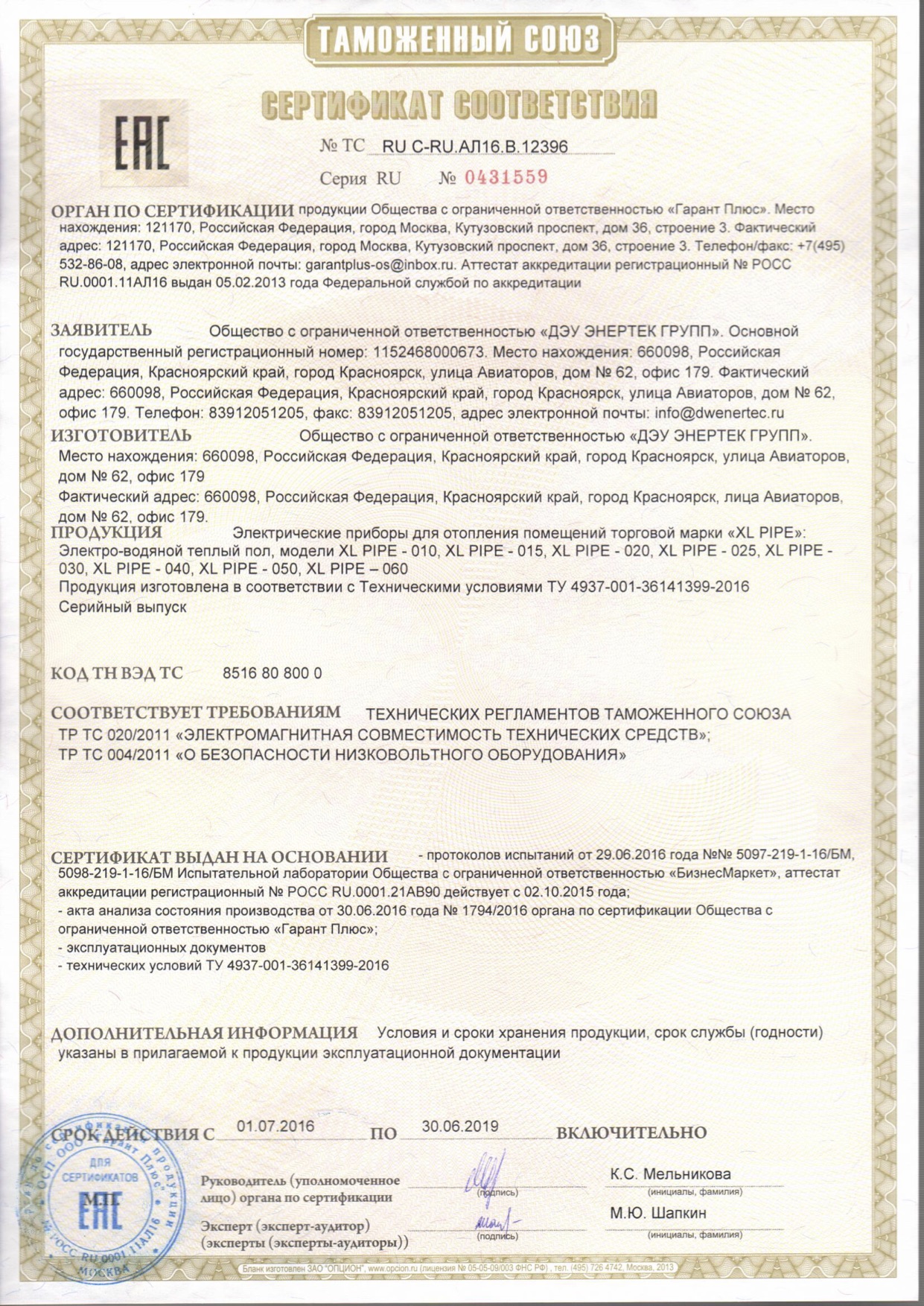 Системы XL PIPE эксплуатируются от источника переменного тока 50 Гц и напряжения 220 В. Подключение через терморегулятор обязательно.
